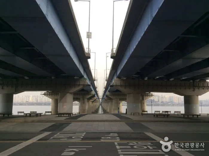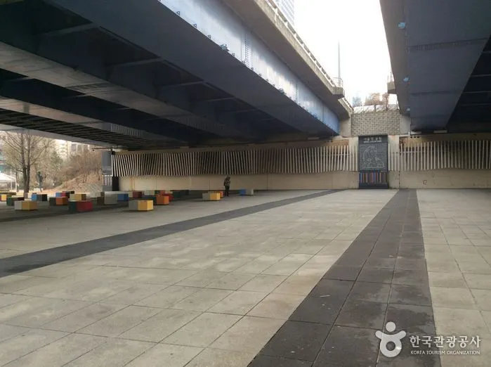 The Seoul Color Park spans over 9,000 ㎡ of land next to the Hangang River under Mapodaegyo Bridge. It features a large wave-shaped sculpture, as well as bar code graphics and benches painted with 10 different colors that have been designed as the Colors of Seoul. The streetscape is designed with images and Colors of Seoul that includes “Dancheong” red, “Kkotdam” red brown, “Namsan” green and more. Sculptures and art works using the Colors of Seoul can also be seen at Seoul Museum of Art and Seoul History Museum.